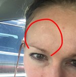 Oh, that’s where the shit started to happen. Towards the end of the show, Mya’s sweatshirt slipped between the chair. I went to reach for it, and a wack. Right on my noggin. Instant swelling and headache, some light coloring as of now. Seriously.